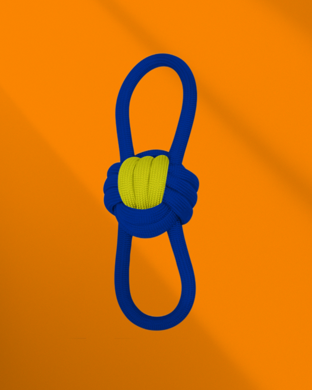 Přetahovací míček z lana se dvěma úchyty. Pevný materiál který je supr na přetahování ale i aport.