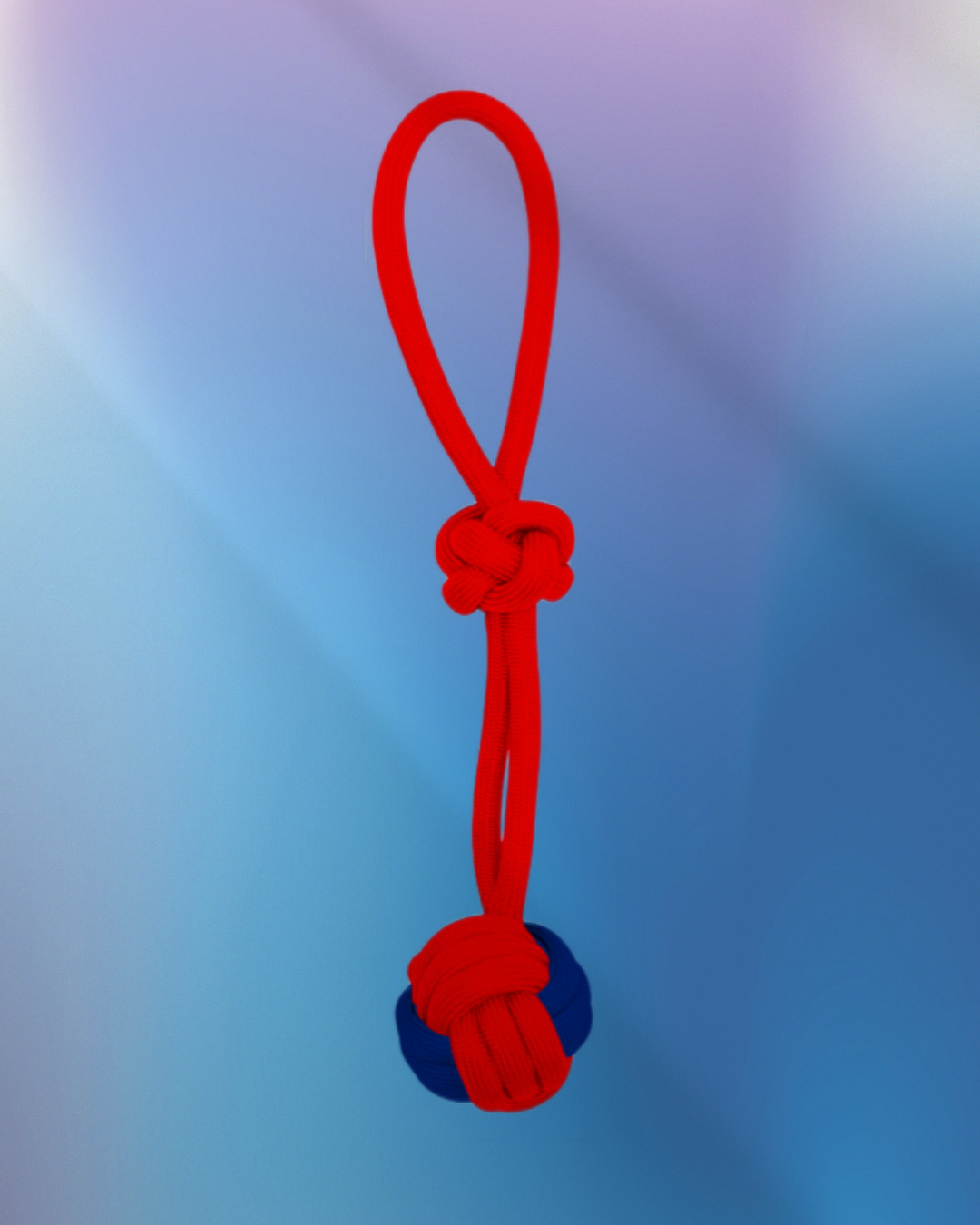 Přetahovací lano s míčkem. Pevný materiál který je supr na přetahování ale i aport.